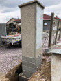 - Základ:dílce výšky 20 cm – základové věnce ve třech vrstvách osazené kratší stranou na bednících tvárnicích vyplněných betonem